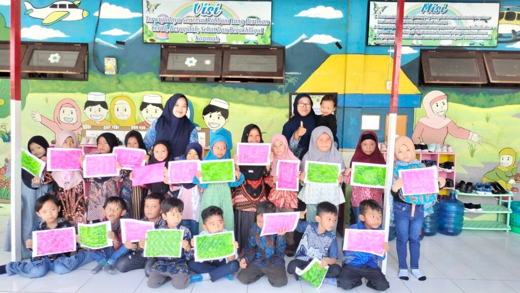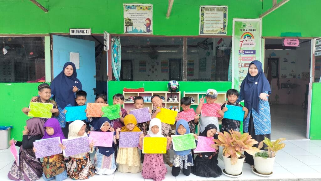 Anak-anak TK & KB IT Al-Ishlah Mengadakan parade baju batik dan mewarnai motif batik