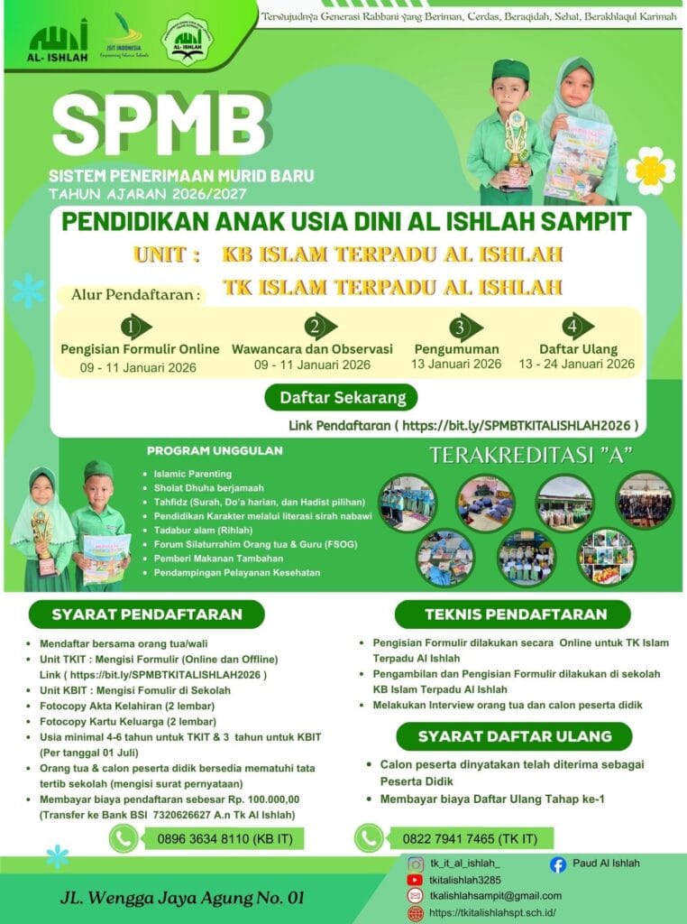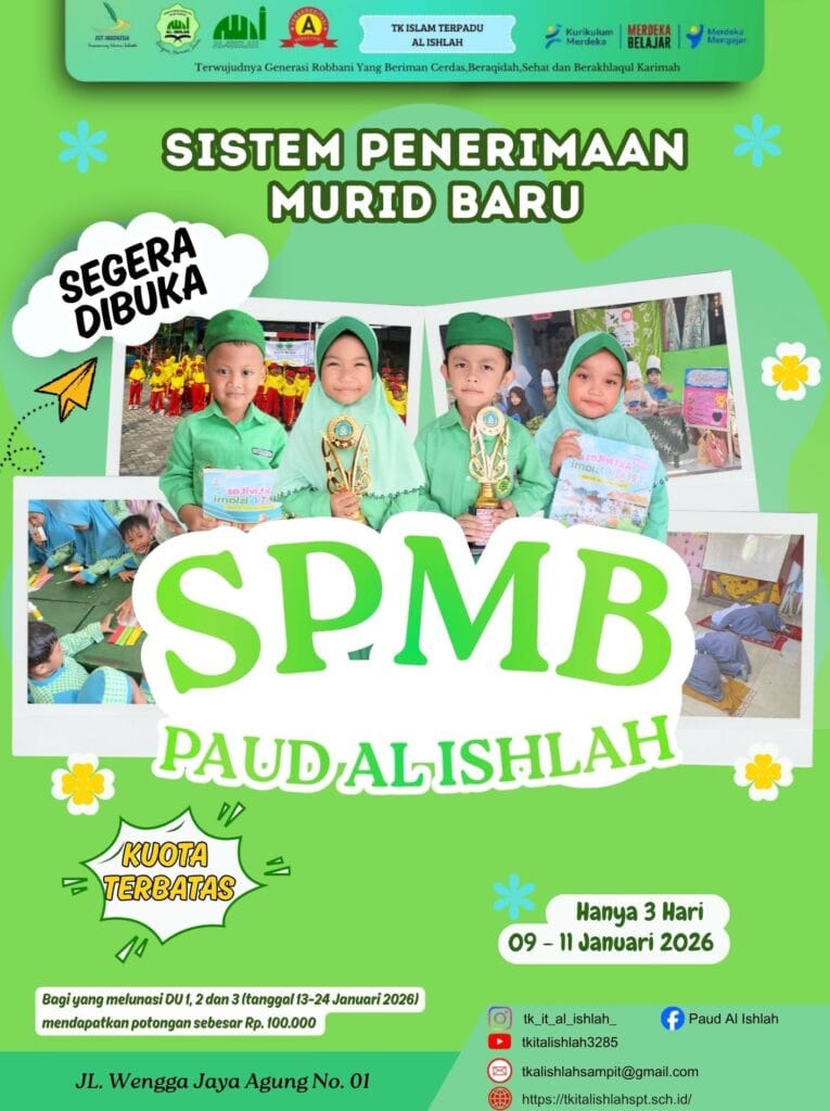 Segera dibuka Sistem Penerimaan Murid Baru (SPMB) PAUD IT AL ISHLAH Tahun ajaran 2026/2027